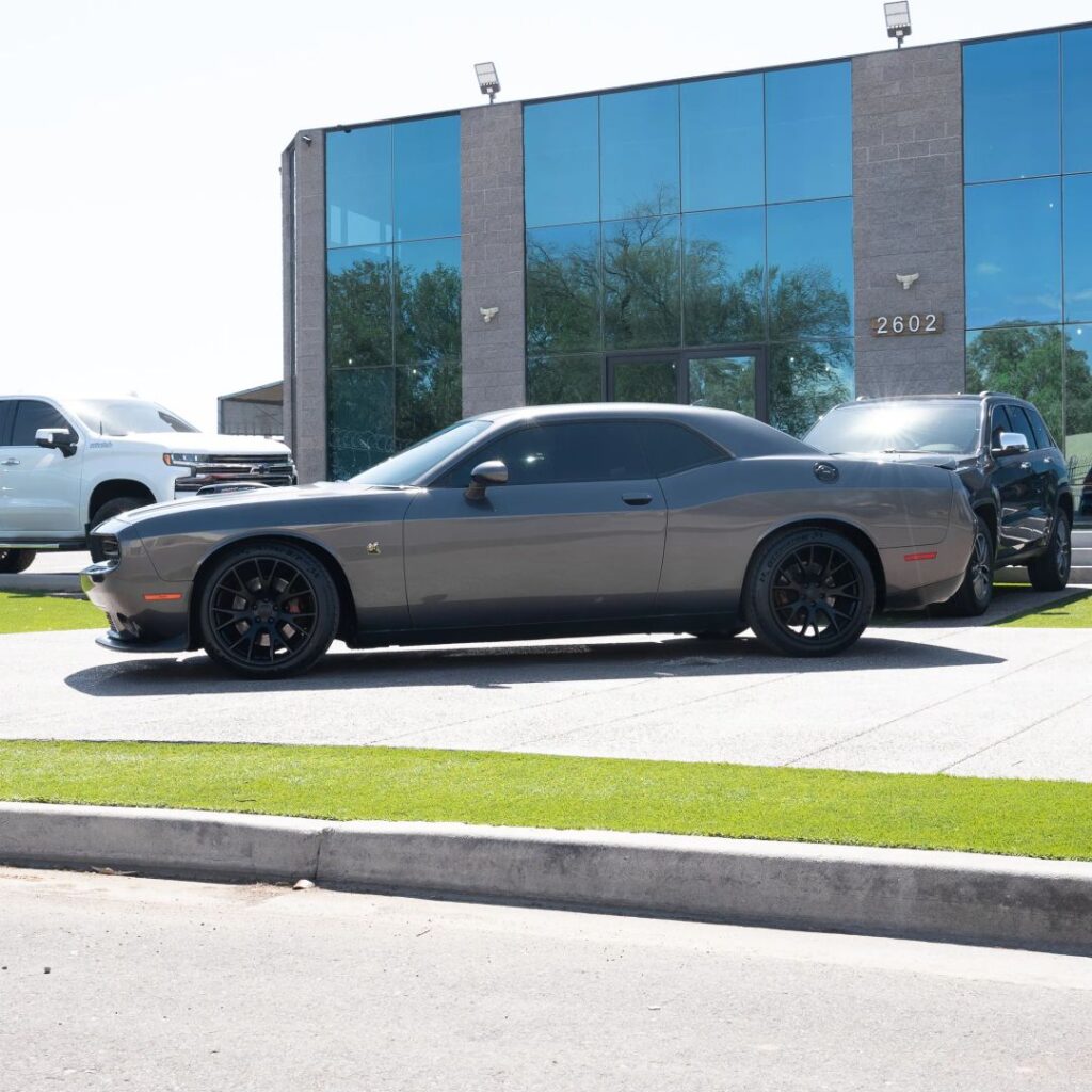 A classic American muscle car with a powerful 6.4-liter HEMI V8 engine and a manual transmission for a more engaging driving experience. This coupe is equipped with a Harman/Kardon premium sound system, heated seats, and a range of safety and convenience features including a blind-spot alert and a navigation system.