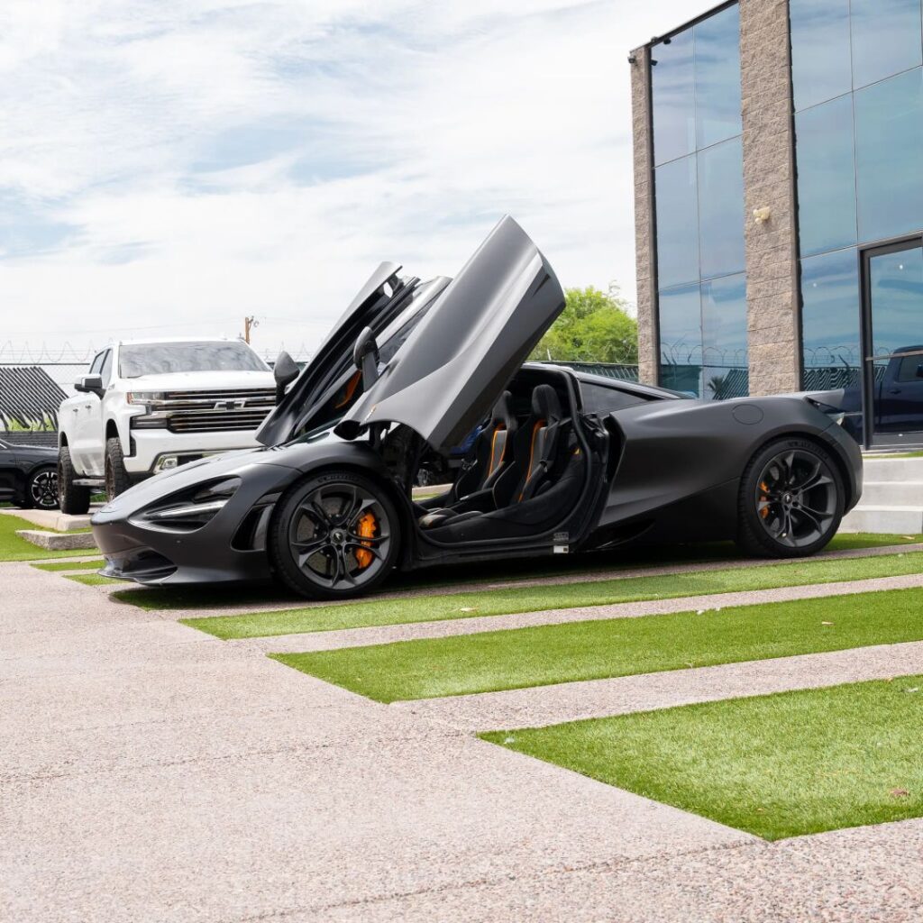 A high-performance, mid-engine supercar with a 4.0-liter twin-turbo V8 engine. This vehicle is designed for a thrilling driving experience, with features like a carbon-fiber chassis, power close doors, and a navigation system. Its aggressive styling is highlighted by LED headlamps and a rear spoiler. With a mileage of only 6,666, it is in excellent condition for its age.